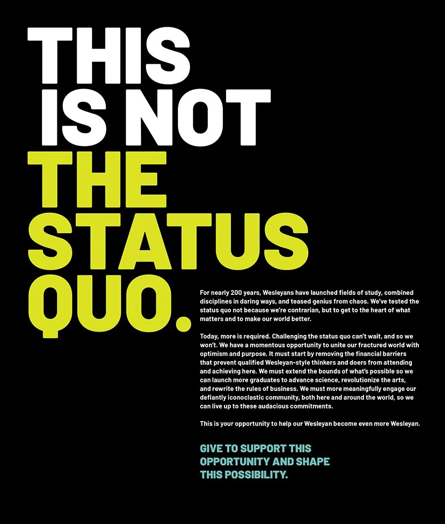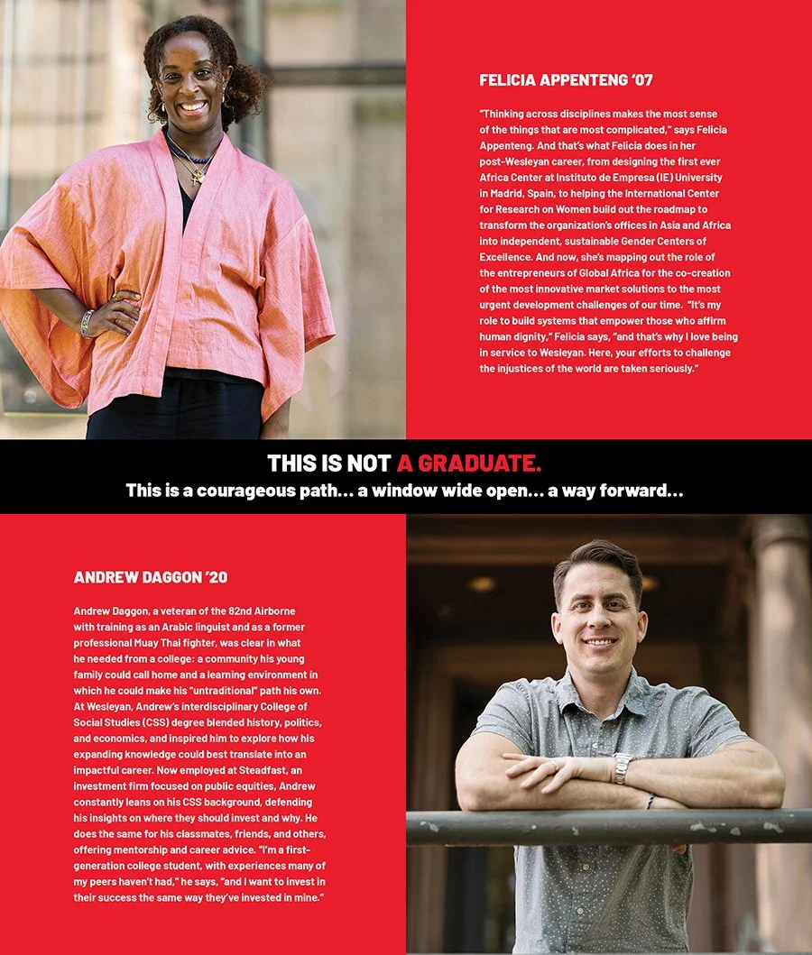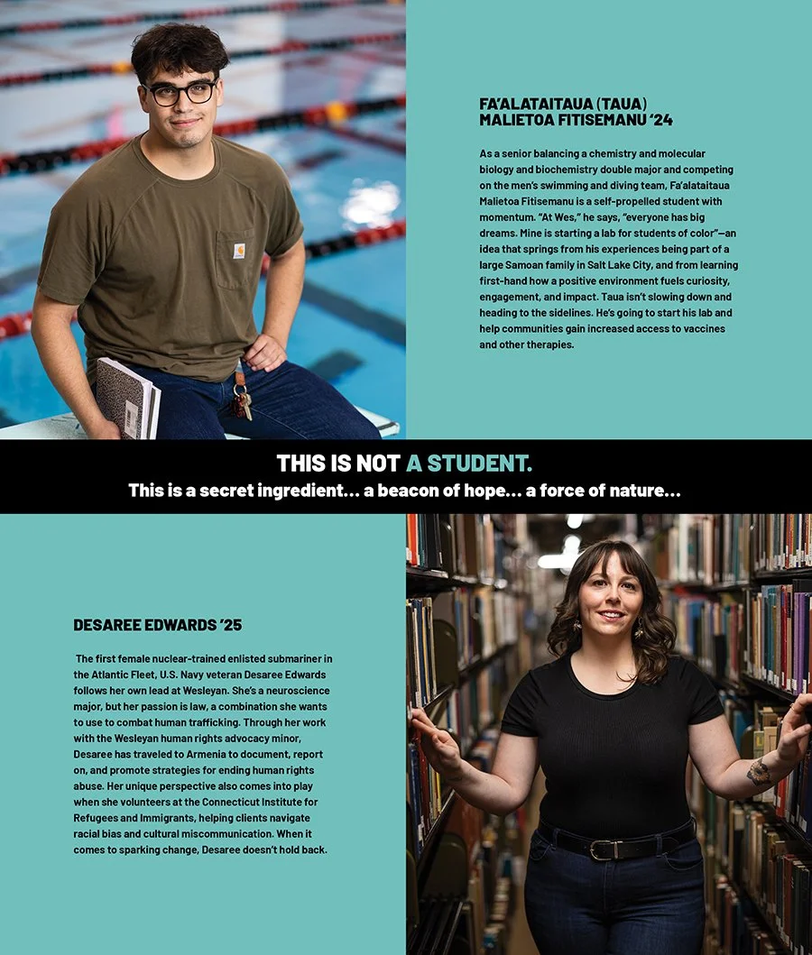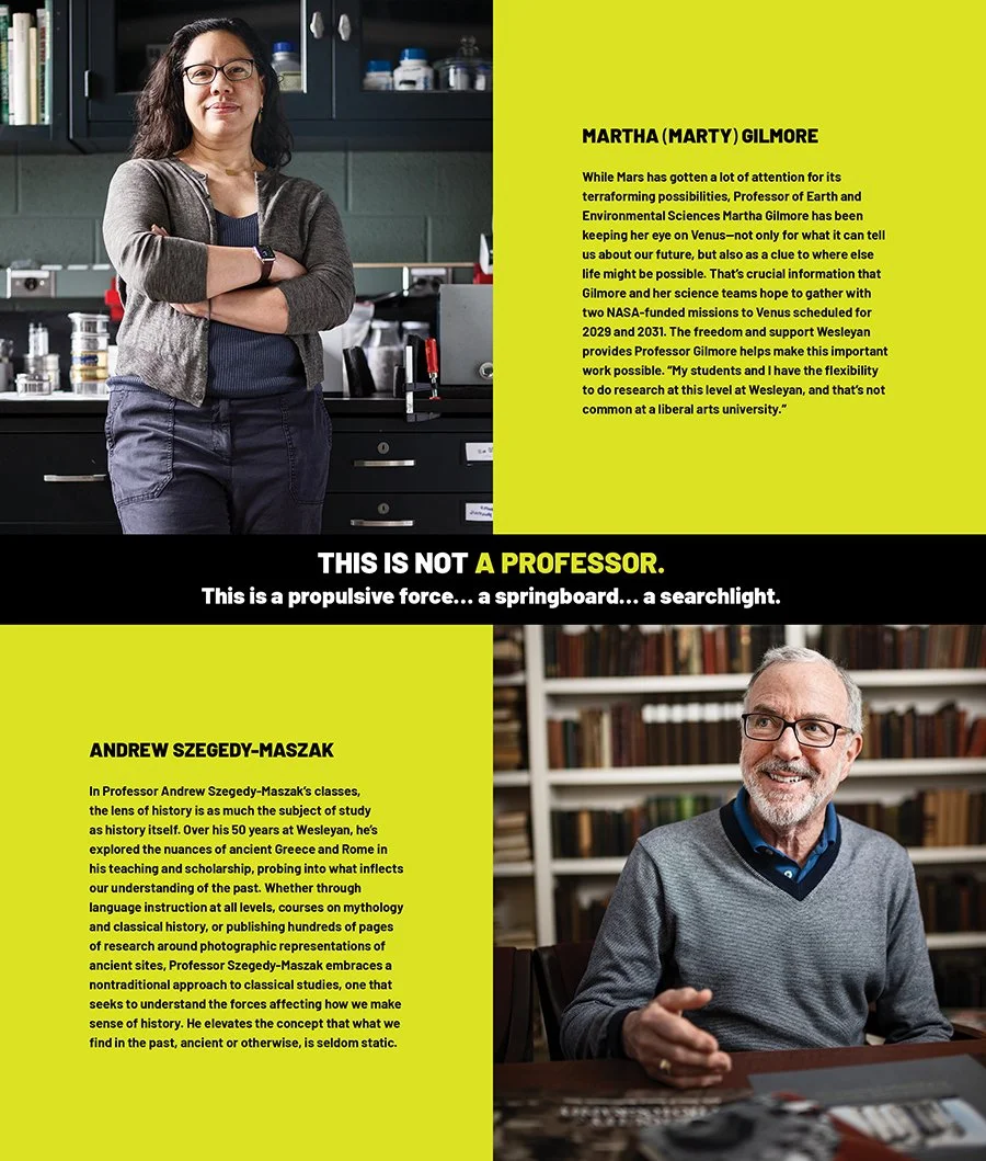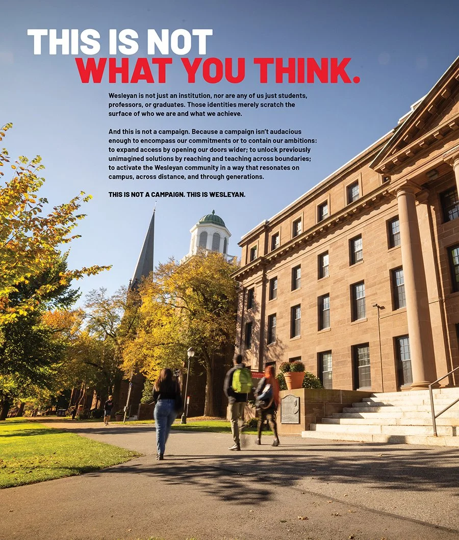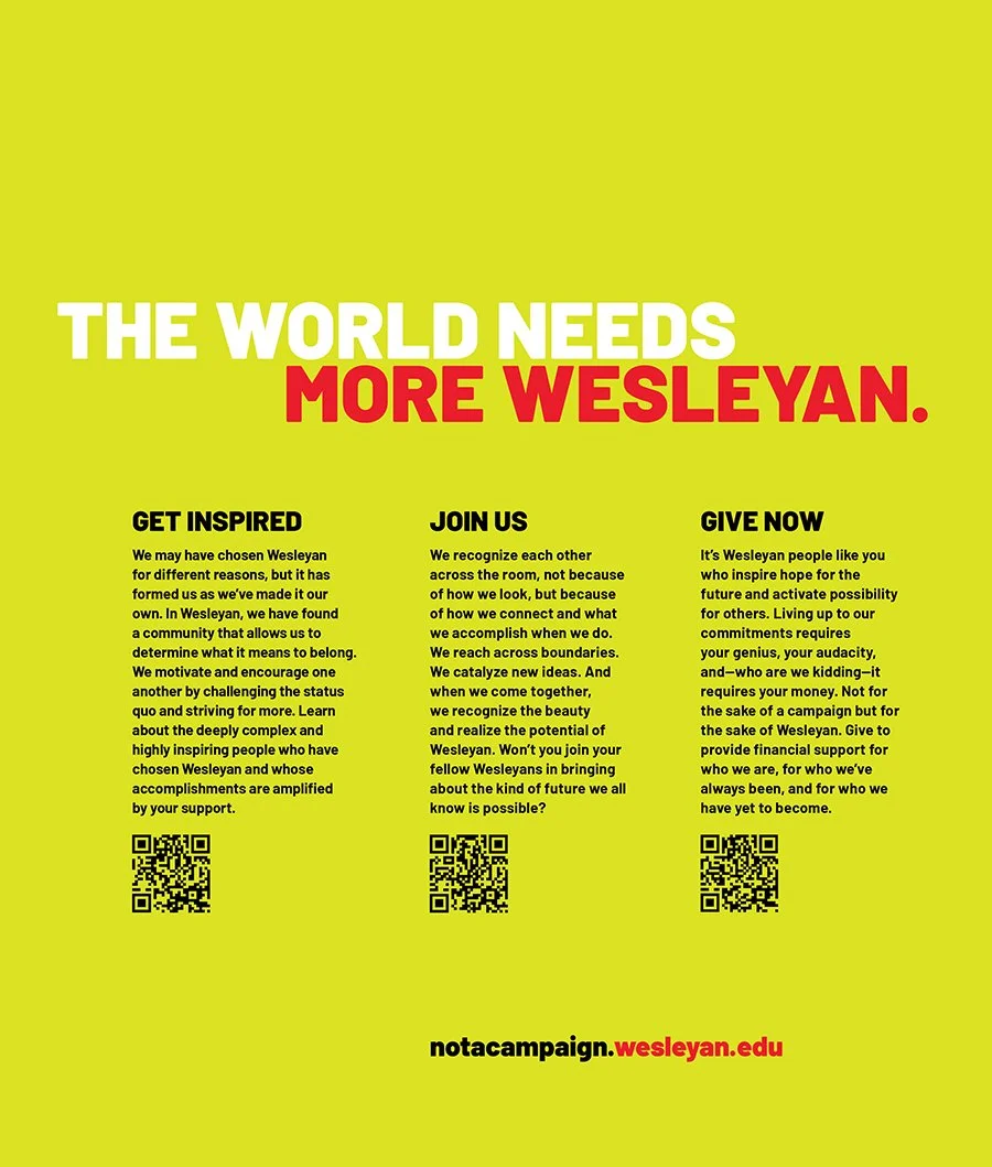 Wesleyan is not just an institution, nor are any of us just students, professors, or graduates. Those identities merely scratch the surface of who we are and what we achieve.